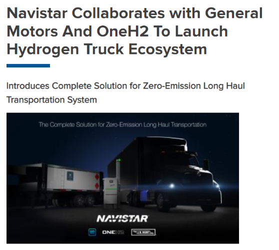 Navistar Collaborates with GM and OneH2 To Launch Hydrogen Truck Ecosystem