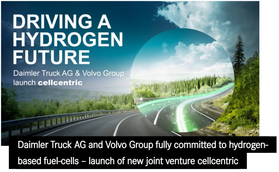 Daimler Truck AG and Volvo Group launched a joint venture Cellcentric for fuel-cells