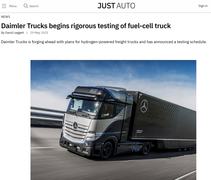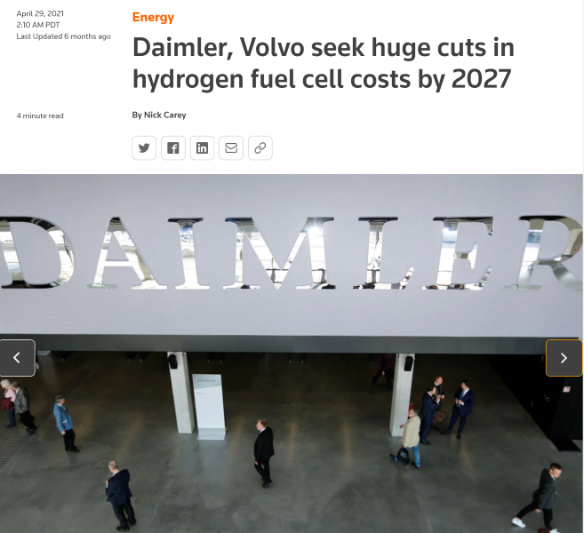 Reuters: Daimler, Volvo seek huge cuts in hydrogen fuel cell costs by 2027