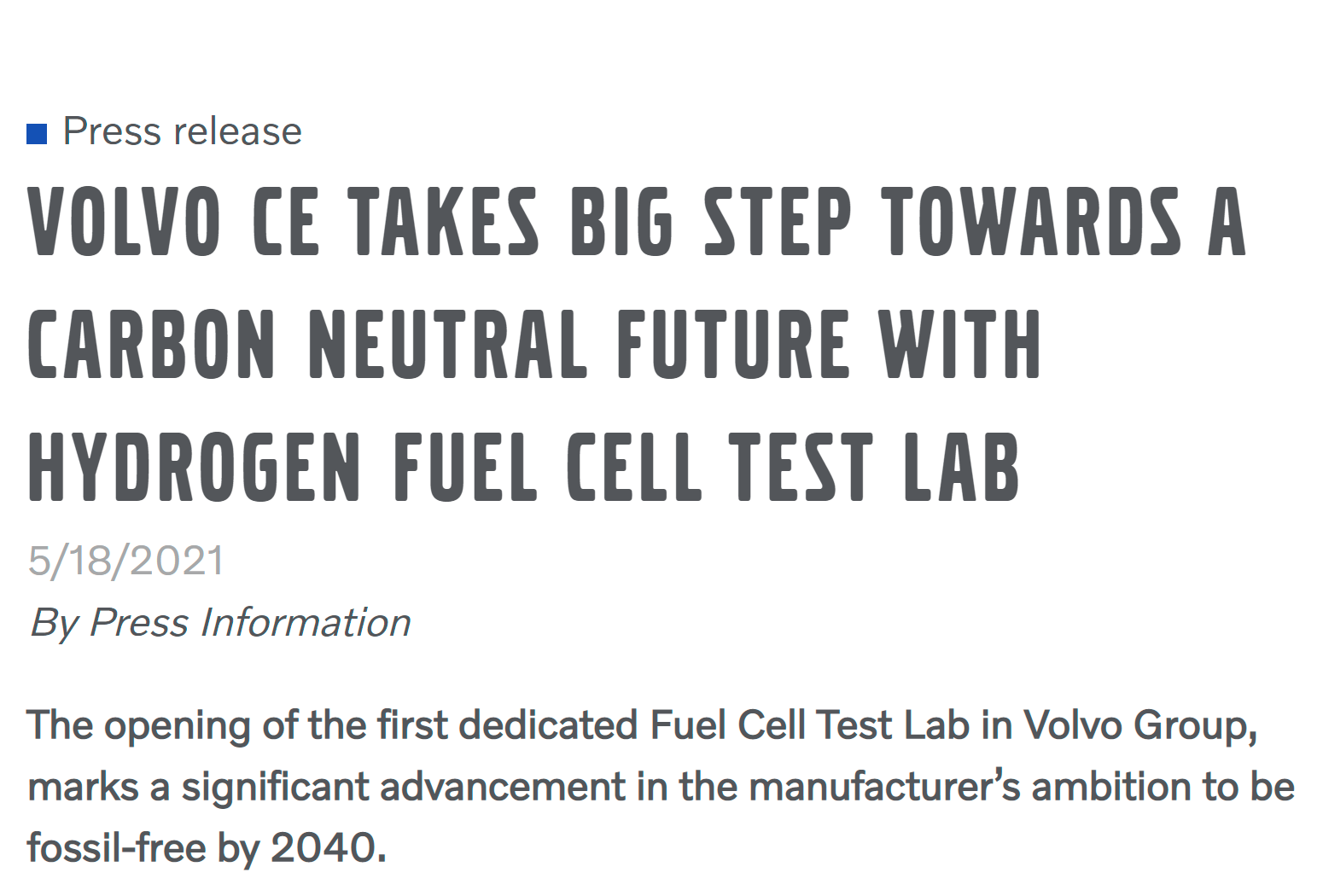 Volvo Group to develop hydrogen fuel cell technology in heavy construction machines