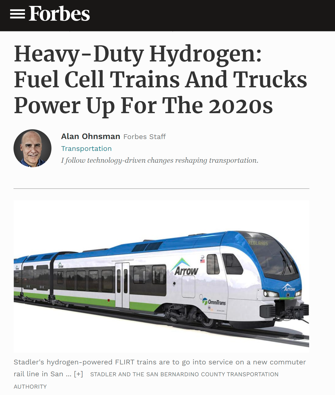 Forbes: Heavy-Duty Hydrogen - Fuel Cell Trains And Trucks