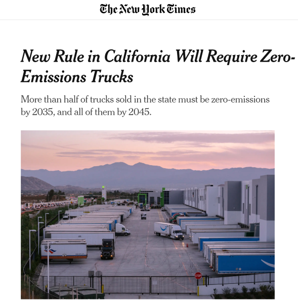 NY Times: New Rule in California Will Require Zero-Emissions Trucks
